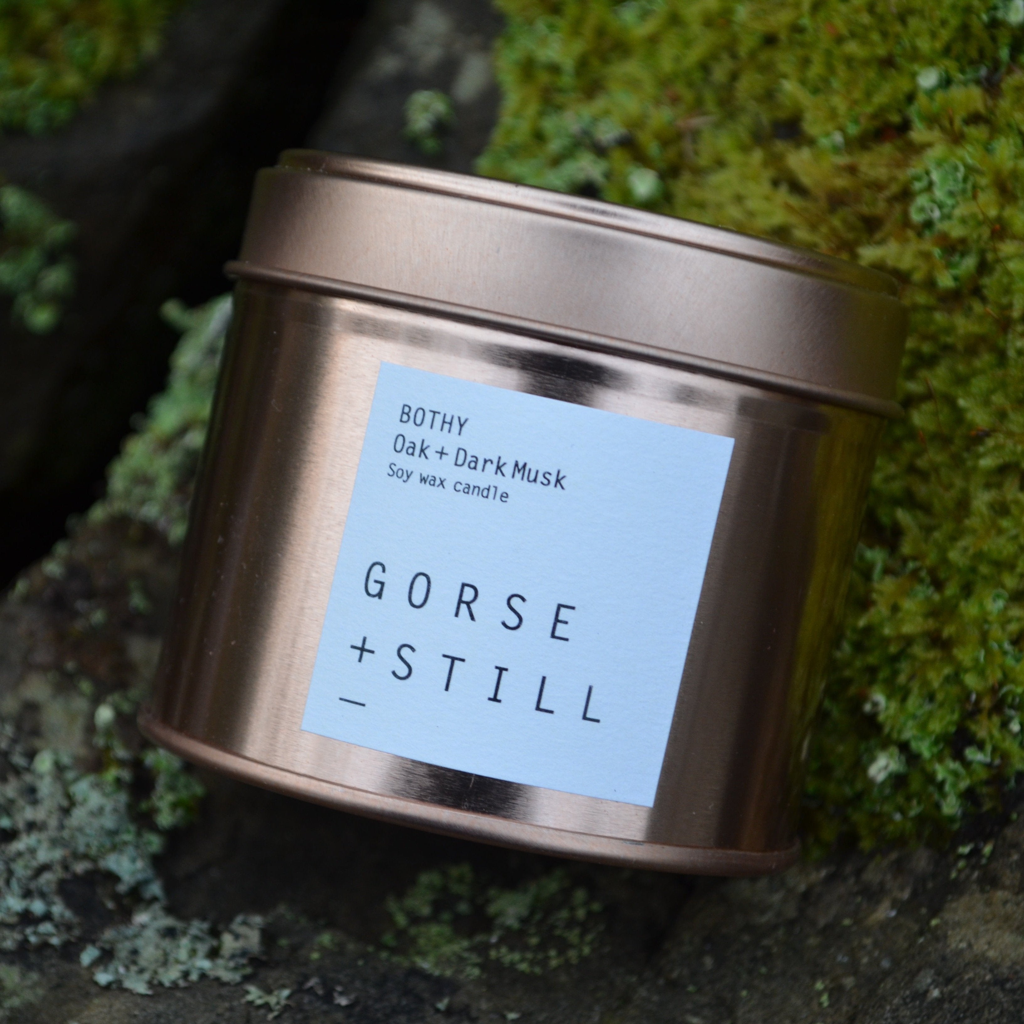 Bothy blend candles are hand crafted and hand poured using a soy wax blend of Smoked Oak, Cedarwood, Ebony, Incense + Dark Musk. Cotton wick.